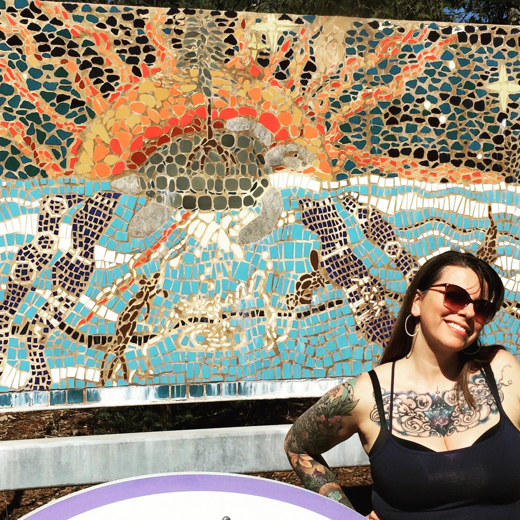 Principal Artist and Designer for a public art project at Zibi, Gatineau QC, Canada. Two large concrete wall murals were completed with mosaic tile, metal elements and wooden accents. Fabricators and art design assistance by Voyager Tile https://voyagertile.com/